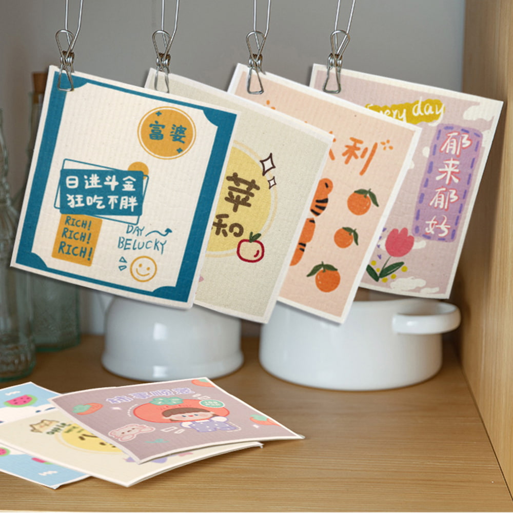 Customized Design Printed Swedish Dishcloth Eco-Friendly Cleaning Towels for Kitchen Dish Quick-Dry Cellulose Spongia Cloths